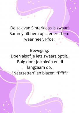 “Sammy helpt Sinterklaas” is een vrolijk beweegverhaal voor jonge kinderen waarin luisteren, bewegen en fantasie samenkomen.