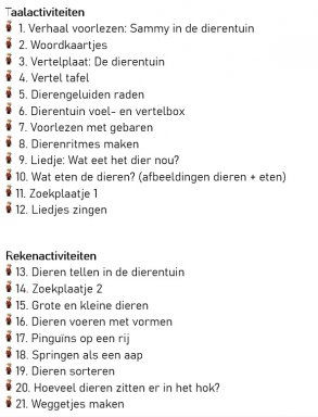 In dit themaboek zitten activiteiten zodat je een heel thema kunt maken rondom het boek: "Sammy in de dierentuin"