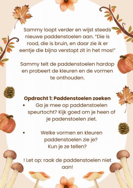 Ga samen met Sammy op ontdekking in de herfst! Sammy ziet paddenstoelen in verschillende vormen en kleuren.