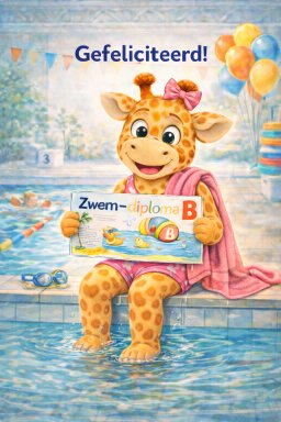 Kaart Gefeliciteerd zwemdiploma B meisje